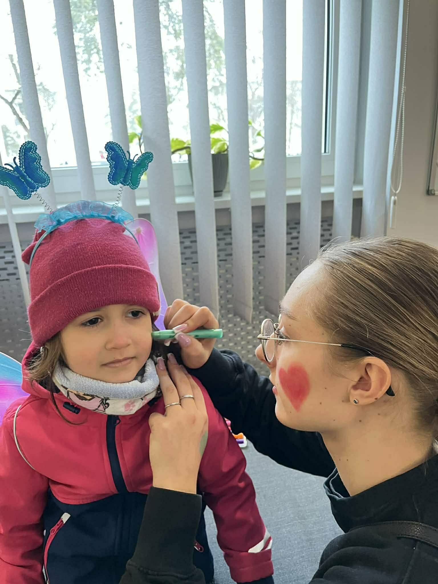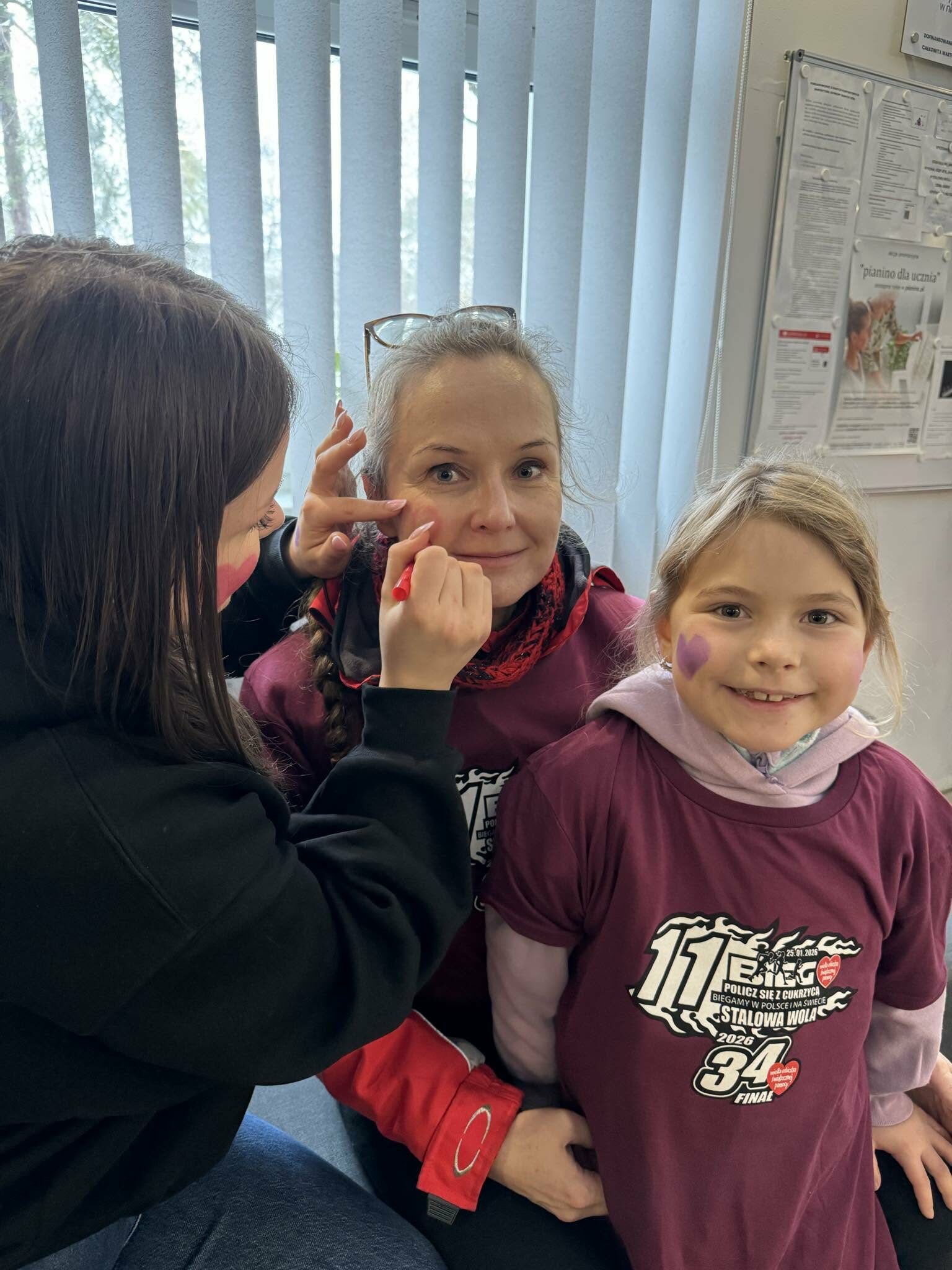 Podczas biegu słuchaczki CKZiU pełniły rolę wolontariuszek, oferując uczestnikom i kibicom wyjątkową atrakcję – malowanie kolorowych serduszek na buziach. Ten drobny, ale bardzo widoczny gest stał się symbolem radości, wsparcia oraz solidarności z ideą wydarzenia i działalnością WOŚP.